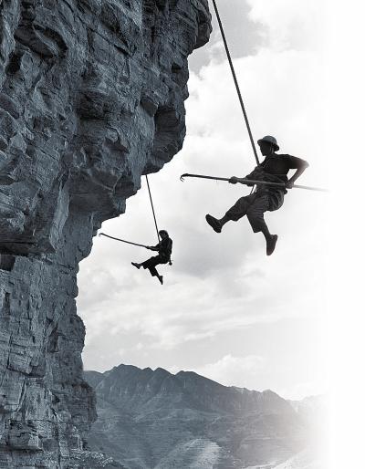 和楊貴第二次見面是在1960年2月,春節(jié)剛過,寒風(fēng)凜冽刺骨,那時(shí),魏德忠去林縣采訪山區(qū)建設(shè)情況,車行至山腳下,當(dāng)聽到崖上開鑿打洞的聲音時(shí),循聲望去,只見一個(gè)個(gè)腰系繩索,懸掛在崖壁上的開鑿巖石的身影??吹蕉嗳苏谛藿ㄋ恼鸷硤雒?,特別激動(dòng),“這不是當(dāng)年的愚公移山嗎?”