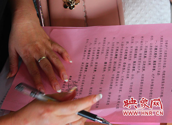 宣誓完后,參加宣誓的各鄉(xiāng)鎮(zhèn)、各有關委局、旅游景區(qū)、星級酒店、景區(qū)商戶、旅行社以及農家賓館業(yè)主紛紛簽訂了《欒川旅游服務“八不”承諾書》。承諾內容包括:不漫天要價,欺客宰客;不以假充真,以次充好;不強買強賣,欺壓游客;不態(tài)度粗暴,惡語傷人;不厚此薄彼,因人而異;不見利忘義,擅自違約;不虛假宣傳,誤導消費;不推諉扯皮,怠慢游客。