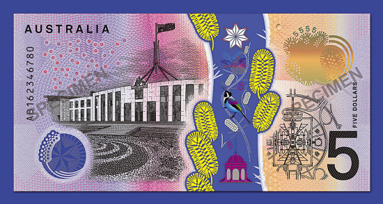 ■新版的5澳元紙幣。