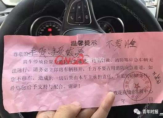保安貼在周小姐后視鏡上的“溫馨提示”
