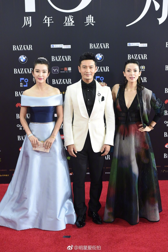 黃曉明一邊一個大花旦,“艷福不淺”??!章子怡穿低胸網(wǎng)紋裙半露香肩展女王氣質(zhì),李冰冰頭戴王冠著一字肩湖藍公主裙走起甜美風(fēng),我說最佳男閨蜜一定要頒給教主,雖然這張圖把他拍成1米6。