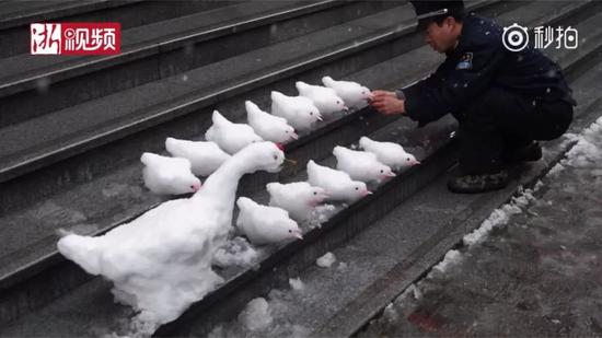 網(wǎng)友:地域限制了保安大哥的才華 要是在東北那可了不得了 今天和我朋友堆了四個小時 給你們看大東北的馬路邊上 ………………就收獲了一波波野生藝術家 人生如戲,全靠演技 堆這些雪人的