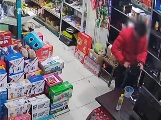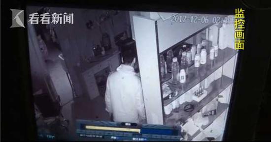 這是2017年12月6號,這家煙酒店里的監(jiān)控視頻,這名身著警服的男子在店里四處轉悠,事后店主發(fā)現錢少了。