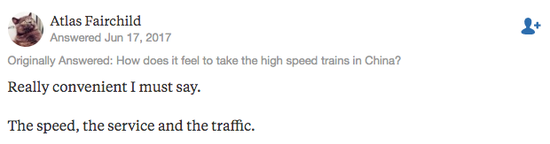 美國(guó)問答網(wǎng)站Quora上關(guān)于在中國(guó)生活有多方便的提問,更是炸出一票散落在世界各地的中國(guó)“死忠粉”。