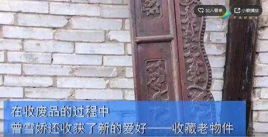 在收廢品的過(guò)程中,曾雪嬌也會(huì)同時(shí)收藏一些老物件。從剛?cè)胄械浆F(xiàn)在,就收到明清的銅錢,還有復(fù)古的煙斗,一顆釘子都沒(méi)有的雕花木門等各式各樣的小物件,“就像尋寶一樣,你會(huì)在這個(gè)過(guò)程中發(fā)現(xiàn)驚喜,并且樂(lè)此不?!?/p>