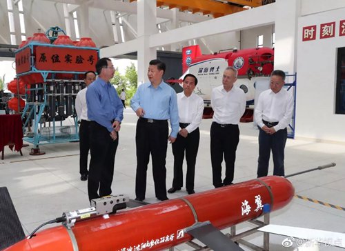 12日下午,習近平總書記來到位于海南三亞的中國科學院深??茖W與工程研究所,仔細察看“海翼”號深?;铏C、“天涯”深淵著陸器等設備,并同“深海勇士”號載人潛水器設計師和深潛團隊親切交談。