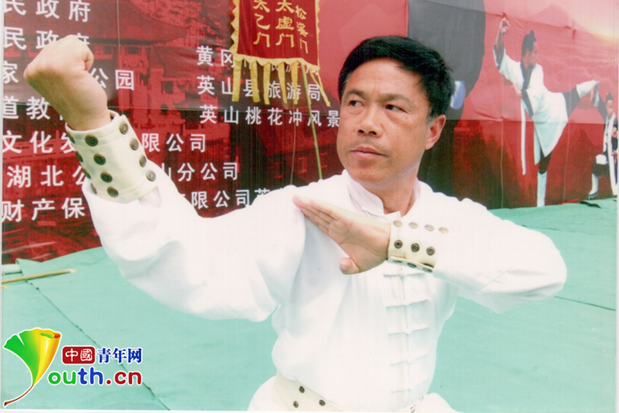 2007年5月在英山縣舉辦的第一屆“南武當杯”國際武術節(jié)上,岳家拳傳承人張業(yè)金現場表演獻技。