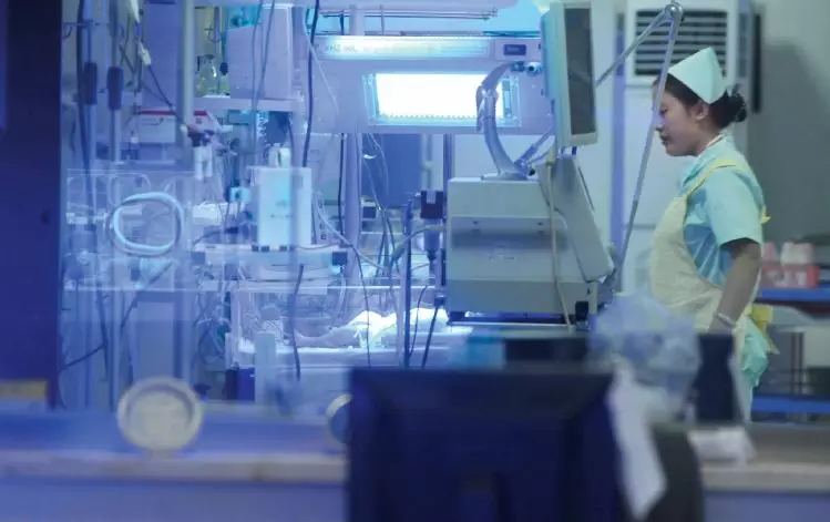 2011年6月,遼寧省沈陽市婦嬰醫(yī)院,重癥監(jiān)護室的醫(yī)護人員照看著一名新生嬰兒。該名新生兒患有溶血癥,急需“熊貓血”,家屬通過微博在網(wǎng)上求助找到36名獻血者,換血后男嬰轉(zhuǎn)危為安。圖/視覺中國