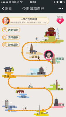 在河南十大名嘴戰(zhàn)隊(duì)中選擇一個(gè)你要支持的戰(zhàn)隊(duì)加入,即可為該戰(zhàn)隊(duì)捐贈(zèng)當(dāng)天的微信運(yùn)動(dòng)步數(shù),該戰(zhàn)隊(duì)獲得用戶(hù)捐贈(zèng)步數(shù)后可在規(guī)定的線(xiàn)路中前進(jìn),到達(dá)終點(diǎn)為獲勝。