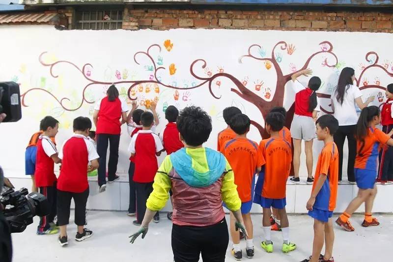 最后鄧亞萍和第一書記秦倩與老師同學(xué)們一起拿起畫筆,在希望小學(xué)的墻上畫出孫莊村的未來(lái)……