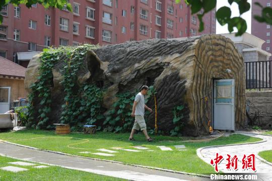 吉林省長(zhǎng)春市近來(lái)出現(xiàn)一所外形酷似樹(shù)墩的公共廁所,引來(lái)很多市民的關(guān)注。這座公廁乍一看去像是一尊巨大的樹(shù)干,長(zhǎng)約十米左右,直徑約四米。張瑤 攝