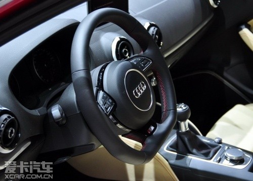 內(nèi)飾方面:奧迪全新一代A3的做工更加精致,造型設(shè)計(jì)也得到大幅度改進(jìn),其中內(nèi)飾帶按鍵的方向盤由真皮材質(zhì)包裹,此外空調(diào)排風(fēng)口等多處細(xì)節(jié)都有類似鍍鉻的邊框作為點(diǎn)綴,檔次感得到升級(jí)。