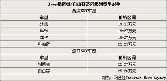 目前國(guó)內(nèi)的部分德系、日系及美系品牌的入門級(jí)SUV車型已進(jìn)行了國(guó)產(chǎn),而克萊斯勒旗下的越野車品牌“Jeep”,尚未有任何國(guó)產(chǎn)車型。相比同級(jí)別國(guó)產(chǎn)SUV車型的價(jià)格,Jeep的入門級(jí)車型在價(jià)格上沒(méi)有任何優(yōu)勢(shì)。但國(guó)產(chǎn)后的Jeep車型因沒(méi)有了進(jìn)口車所帶來(lái)的關(guān)稅,日后的售價(jià)將進(jìn)一步下探。加之考慮同級(jí)別的競(jìng)爭(zhēng)對(duì)手,在市場(chǎng)上的入門級(jí)車型的售價(jià)均維持在19萬(wàn)元,所以日后Jeep國(guó)產(chǎn)化的入門級(jí)價(jià)格也將定位在19萬(wàn)左右。