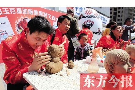 4月13日,在鄭州市秦嶺路一廣場,幾位民間藝人發(fā)起為腦癱患兒小晨陽募捐的義賣活動(dòng),造型各異的面人、神氣活現(xiàn)的泥塑、精致逼真的葫蘆烙畫……這些久違的民間藝術(shù)品受到市民熱捧,一個(gè)小時(shí)募捐了3667元。