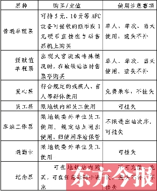 為了讓市民了解鄭州地鐵車票,運(yùn)營(yíng)分公司還專門解釋了鄭州地鐵開(kāi)通初期發(fā)行的主要票種及相關(guān)規(guī)定(見(jiàn)表格)。