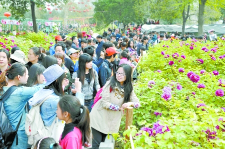 4月4日,在洛陽王城公園,來自四面八方的游客在觀賞盛開的牡丹花。4月5日,為期1個月的第30屆洛陽牡丹文化節(jié)將隆重開幕,洛陽市各大公園的各色牡丹也將陸續(xù)綻放,中外游客盡可以感受古都洛陽的今日風(fēng)采,觀賞洛陽牡丹的嬌艷芳容。 河南日報農(nóng)村版記者 楊遠高 攝