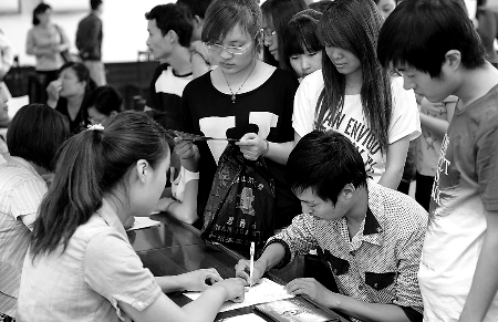 5月8日,在2012年民營企業(yè)招聘周活動(dòng)武陟縣分會(huì)場(chǎng),一位求職者在填寫求職登記表。本次招聘周活動(dòng)該縣共有31家民營企業(yè)參加,涉及工種116個(gè),提供就業(yè)崗位1439個(gè)。馮小敏 張新草 攝