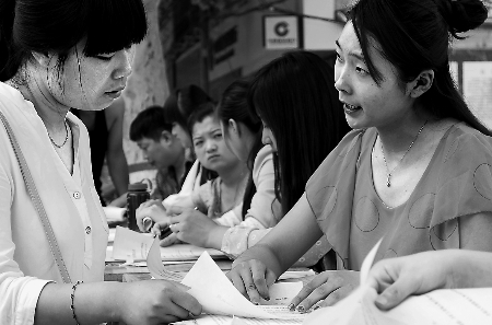這也表現(xiàn)在當(dāng)天的招聘活動(dòng)上。在當(dāng)天活動(dòng)的鄭州主會(huì)場(chǎng),即將大專畢業(yè)的朱康想找一份圖文設(shè)計(jì)的工作,這和她的專業(yè)對(duì)口。“挺難找的,好多是話務(wù)員、銷售、傳菜員之類的技能性不高的工作。放棄專業(yè)去做其他的,感覺沒有優(yōu)勢(shì),未來發(fā)展空間也不大。”朱康說。