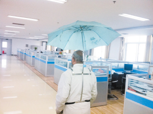 昨日,康明智老人當(dāng)著記者的面,演示起“傘架”的使用方法?!皞慵堋庇刹讳P鋼管制成,“傘架”上方的兩個掛鉤可直接掛在人肩膀上(如圖),掛鉤上方則是一根不銹鋼管,鋼管上裝上了夾子,用于固定雨傘,鋼管里面又裝上轉(zhuǎn)軸,可以來回轉(zhuǎn)動雨傘的方向,掛鉤下面則用兩根粘膠帶連接固定在人的腰部。