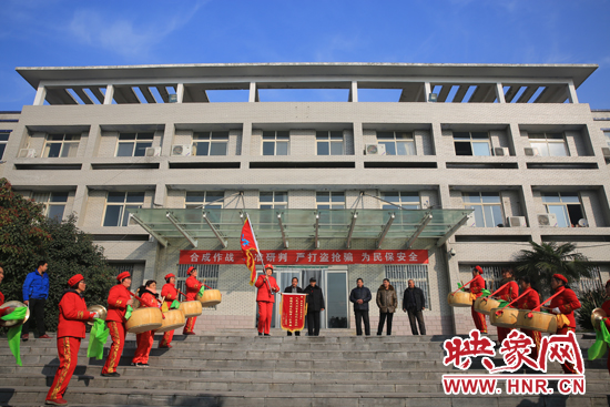 映象網(wǎng)訊(記者 王文凱 通訊員 牛智瑞 薛勇)為感謝滎陽(yáng)警方很短時(shí)間內(nèi)破獲盜挖秦氏家族祖墳案,1月3日早上10時(shí)許,河南省秦氏協(xié)會(huì)鄭州聯(lián)絡(luò)處、滎陽(yáng)秦氏家廟理事會(huì)會(huì)長(zhǎng)及成員,以及高村鄉(xiāng)油坊村村主任等30多人一行來(lái)到滎陽(yáng)市公安局刑偵大隊(duì),將一面“人民衛(wèi)士智勇擒獲盜墓賊、保穩(wěn)定保文物守一方平安”的錦旗送給刑偵大隊(duì)領(lǐng)導(dǎo)。