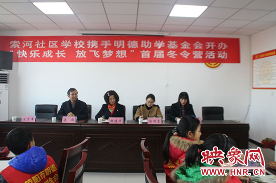 映象網(wǎng)訊(記者 王文凱 通訊員 尚瑩 蔣艷艷)1月20日上午,以“放飛夢想 快樂成長”為主題的滎陽市索河中心校冬令營活動,在索河辦廣場社區(qū)舉行開營儀式。滎陽市僑聯(lián)主席胡建華、滎陽市教體局職教科科長魯標、辦事處副主任陳明霞、索河中心校校長馬叢敏、西街小學30名留守兒童、家長代表以及13位志愿者老師參加。