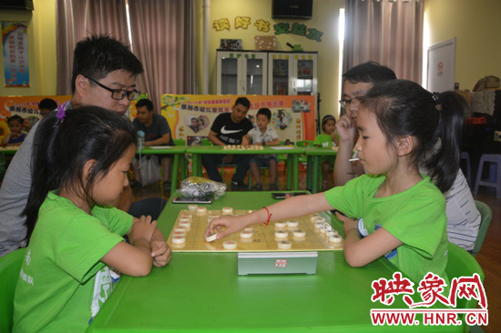 滎陽市長王新亭與孩子一起下象棋