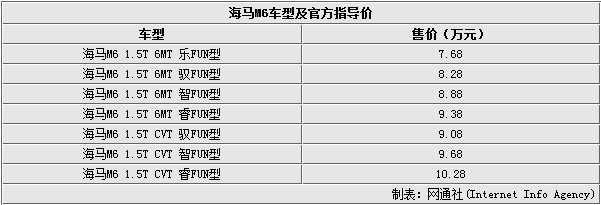 海馬汽車在進(jìn)入新一輪快速發(fā)展期以來,除了實(shí)現(xiàn)產(chǎn)品平臺的升級和新產(chǎn)品的推出之外,最重要的一項(xiàng)便是創(chuàng)新技術(shù)運(yùn)用。海馬旗下全新A+級轎跑車M6正是遵循此理念推出的車型。網(wǎng)通社在上海車展第一時間發(fā)回現(xiàn)場報(bào)道,海馬M6于今日正式上市,新車售價區(qū)間為7.68-10.28萬元,共7款車型。這款新車搭載了一臺1.5L渦輪增壓發(fā)動機(jī),匹配CVT變速箱。此外,新車還是海馬旗下首款搭載“moofun”系統(tǒng)的車型。