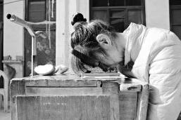 父親托村里的木匠為郭向鴿打造了一架特殊的“小車”——全身木質(zhì)結構,主體是一個木頭椅子,座位上有一個能打開的洞,便于郭向鴿上廁所;兩側安裝了擋板,防止她跌落;面前是一張小桌板,桌板上有一個固定飯碗的卡槽;下面還有一個小抽屜。“小車”下方有4個輪子,椅子靠背和桌板一側各有一個把手,是用來移動“小車”的。輪子只能直來直去,需要拐彎時,只能費力地抬起扶手,把小車整個扭轉個方向,再推著繼續(xù)前進。“小車”的制作雖然粗糙,每一個細節(jié)卻十分人性化。從小到大,這樣的小車郭向鴿已經(jīng)坐壞了好幾輛。隨著郭向鴿的成長和護理經(jīng)驗的積累,父親不斷改進“小車”,最終形成了現(xiàn)在的模樣。每天早晨,郭向鴿醒來后,母親就艱難地將她從床上扶到小車上,晚上睡覺時再扶到床上。郭向鴿的吃喝拉撒都在小車上完成,這樣的日子已經(jīng)過了25年。有時候,當冬天的陽光灑進庭院,母親就會推郭向鴿出來曬曬太陽。但是,如果要推她出院門,郭向鴿是說什么都不會同意的。