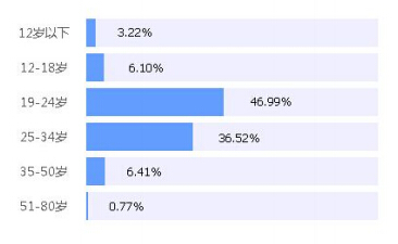 參與微博討論的網(wǎng)友中,年齡集中分布在19-34歲,共占比 83.51%,其中19-24歲占比最高,為46.99%。19-24歲為90后群體,這個群體自信張揚(yáng)、充滿激情、向往自由,“世界那么大,我想去看 看”這句話在年輕群體中倍受追捧。