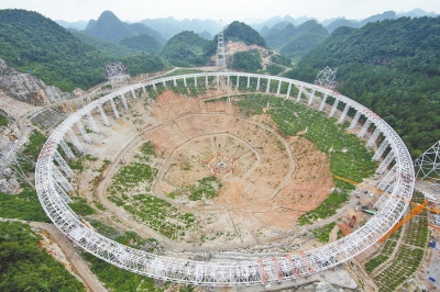 500米口徑球面射電天文望遠(yuǎn)鏡雛形初具圖片來(lái)自新華社
