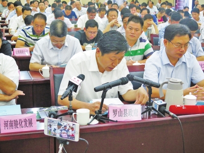 在昨天的約談會上,羅山縣委書記許遠福顯得異常醒目,他是此次約談會中,唯一一名作為約談代表發(fā)言的地方政府負責人,并進行表態(tài)性發(fā)言。