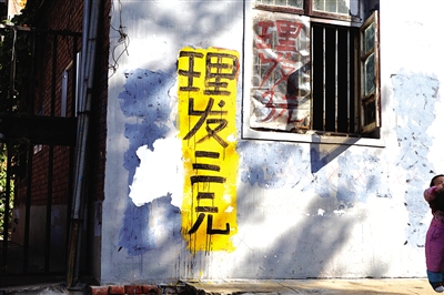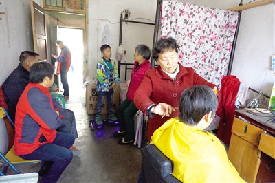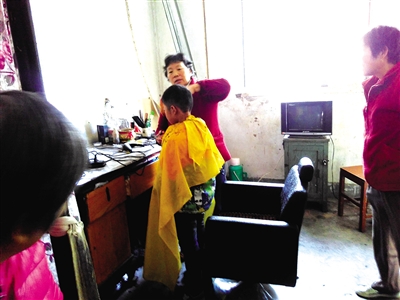 10月30日上午,在省紡機(jī)家屬院門口,老太太的理發(fā)店門外,黃色油漆寫的“理發(fā)三元”的牌子格外醒目,在一間不大的理發(fā)店內(nèi),除去老太太的一張木板床外就是理發(fā)的東西,屋內(nèi)緊挨門口的長凳上坐滿了前來理發(fā)的人們,有大人也有小孩,大家坐在那里一邊等著理發(fā),一邊互相閑聊著。老太太正在給一個十來歲的小男孩理發(fā),旁邊坐著小男孩的爺爺奶奶。一些附近的農(nóng)民工也不斷進(jìn)來詢問老太太啥時候有空給他們理發(fā)。