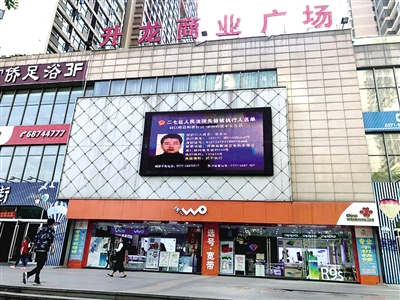 在二七轄區(qū)的一些小區(qū)及升龍廣場、金博大廣場等處,記者發(fā)現(xiàn)這些地方的LED屏幕每天都在滾動播放著欠錢“老賴”,公布的老賴名單中包含姓名、大頭貼照片、身份證號、家庭地址、執(zhí)行案號、執(zhí)行標的及失信情形等信息。