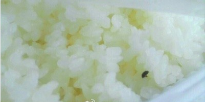 10日,陸先生乘坐G125次列車從北京前往上海,在購(gòu)買的45元盒飯內(nèi)發(fā)現(xiàn),米飯中有不少“芝麻”狀的蟲子?!案吲d地以為米飯內(nèi)加了黑芝麻,仔細(xì)一看都是小蟲子?!薄澳繙y(cè)有10只”。事后,列車長(zhǎng)退還其45元飯費(fèi),但陸先生仍表示不滿。