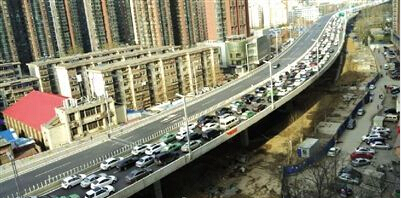 前天,隴海路高架京廣路至紫荊山路段一度被堵城停車場,平時(shí)三分鐘的路程竟然走了近40分鐘。原來是施工單位在橋面上擅自占用車道施工,事先沒有向交警部門報(bào)備?,F(xiàn)在施工設(shè)備已移至地面,今天不會影響高架通行。