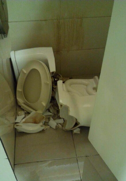據(jù)@新橋機(jī)場007 :今天上午新橋機(jī)場航站樓一名旅客站在馬桶上大便時(shí),馬桶發(fā)生碎裂,劃傷臀部,被緊急送往醫(yī)院救治。請大家遵守公共衛(wèi)生。圖為碎裂的馬桶。