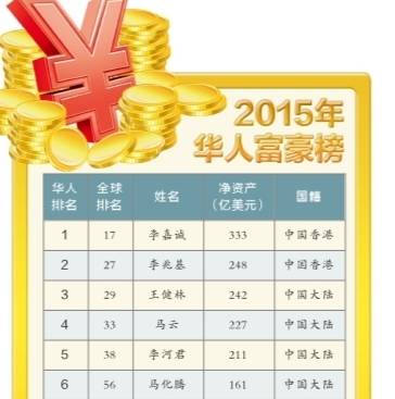 昨日《福布斯》雜志中文版發(fā)布2015華人富豪榜。李嘉誠(chéng)以凈資產(chǎn)規(guī)模333億美元再次蟬聯(lián)第一;李兆基第二;王健林第三,凈資產(chǎn)達(dá)242億美元,雄霸內(nèi)地首富。河南共有4位企業(yè)家上榜,天瑞集團(tuán)董事長(zhǎng)李留法以凈資產(chǎn)規(guī)模21億美元領(lǐng)跑。