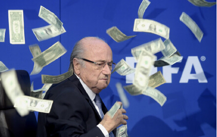 國際足聯(lián)召開新聞發(fā)布會,宣布新主席選舉將在2016年2月26日舉辦,不過發(fā)布會發(fā)生一個(gè)插曲,喜劇演員李-尼爾森突然闖入,他向布拉特不斷揮舞鈔票,并且諷刺道,”韓國拿下2026年世界杯的錢夠了吧!“隨后他把錢全都扔在了布拉特的臉上,后者一臉驚慌。