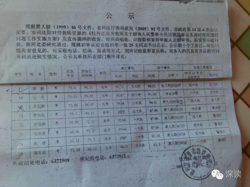 日前,有多名黑龍江省牡丹江市強(qiáng)制戒毒所(原勞教所)在職及退休干警通過爆料平臺(tái)向深讀爆料稱,該單位原副所長(zhǎng)為了能讓兒子進(jìn)入勞教所工作,通過虛構(gòu)出生年月的手段造假,使其兒子順利進(jìn)入勞教所工作,并在入黨后被提拔成為單位的中層干部。