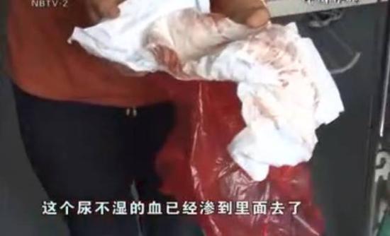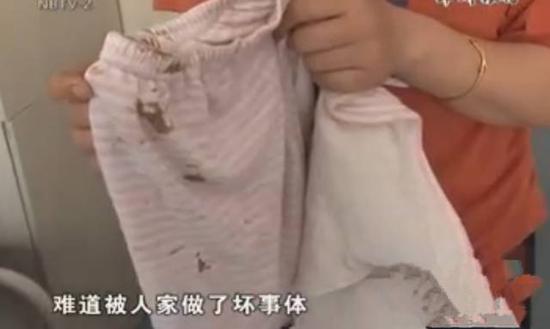 有個人我們是認識的,他也是在菜場里做生意的,有的時候會抱女兒玩。這回也是抱女兒出去玩,差不多40分鐘才回來。當時寶寶手上拿著糖但是目光很呆滯,我給她換衣服,碰到她下體,她有點不高興,尿不濕的血已經(jīng)滲到里面去了……