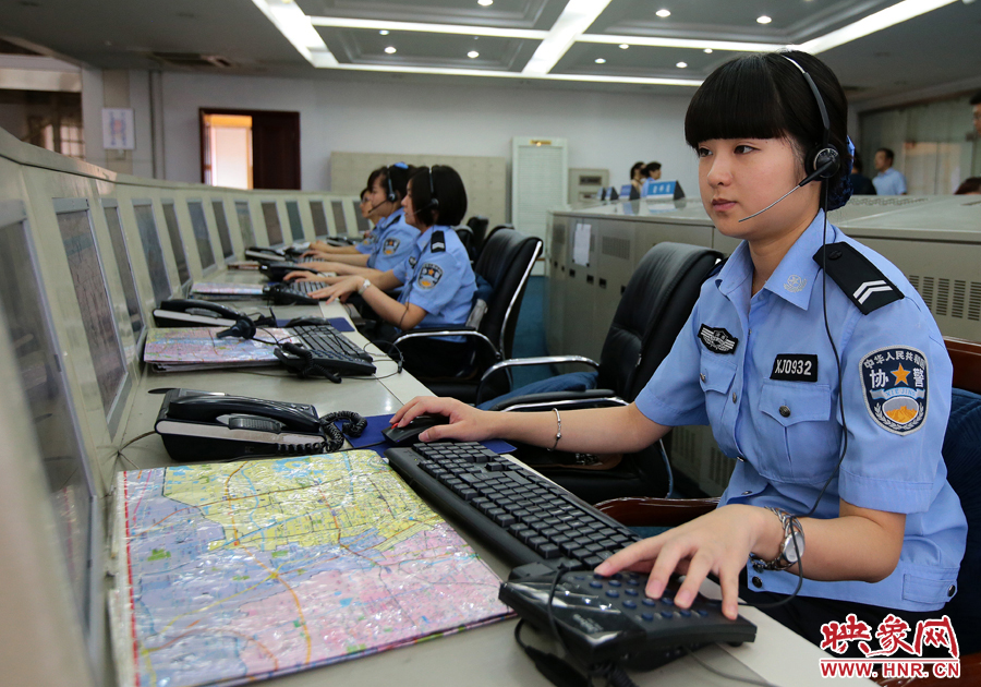 鄭州110指揮中心內,平均每天接警1萬起,如今天氣比較熱,最高時將達到一萬兩千起