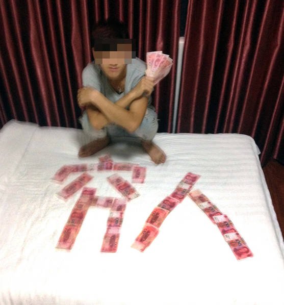 在小偷鄧某隨身帶的手機(jī)里,警察還意外發(fā)現(xiàn)了兩張照片,是一名男子和用100元人民幣擺成的“窮人”、“窮不”的字樣的合影。經(jīng)過(guò)民警詢問(wèn)得知,照片上的男子是鄧某的老鄉(xiāng)唐某,這些錢(qián)是他第一次行竊的時(shí)候偷來(lái)的,總共有5100元。由于第一次一次性竊得這么多錢(qián),兩人欣喜若狂,在居住的旅店內(nèi)把百元大鈔盡情的“秀”了一把。警方則根據(jù)照片上的線索順藤摸瓜,在廣東將唐某逮捕。
