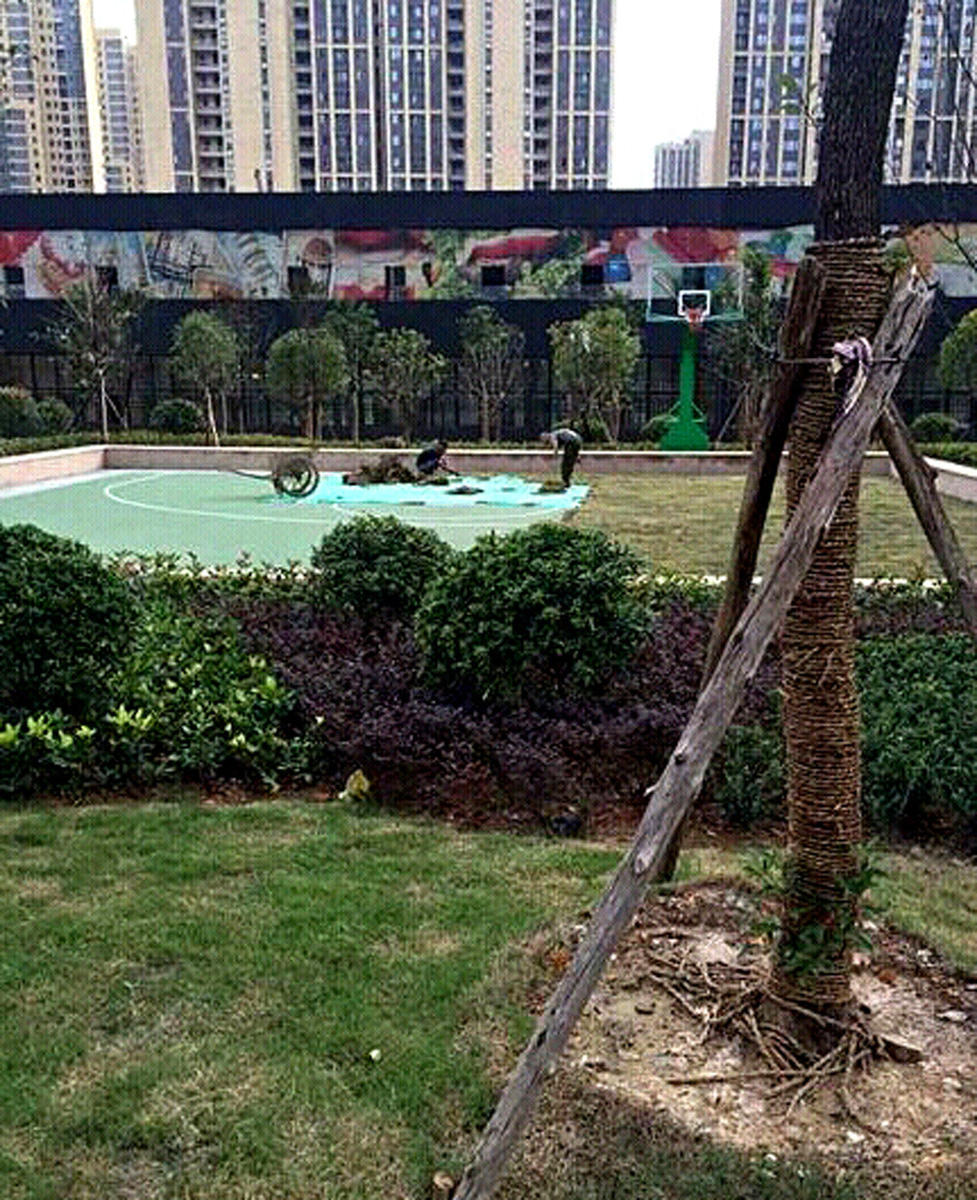 2015年10月12日,湖北武漢市一小區(qū)住宅項(xiàng)目為了通過(guò)綠化部門(mén)驗(yàn)收,開(kāi)發(fā)商可謂煞費(fèi)苦心:在已建好的球場(chǎng)上鋪上草坪,增加綠化率。