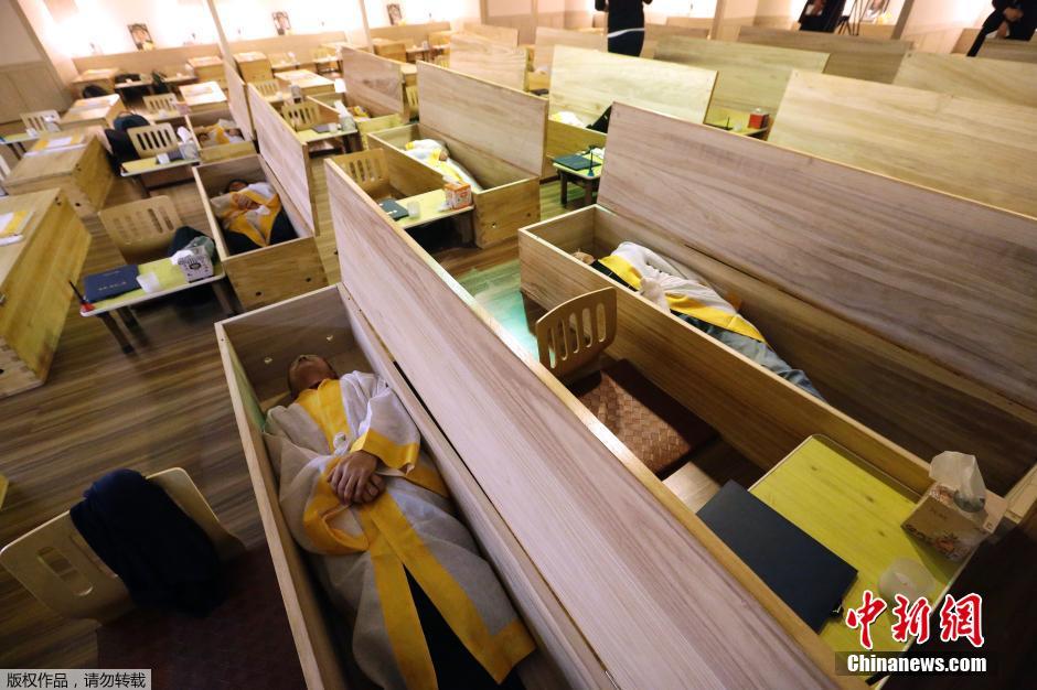 韓國(guó)社會(huì)近來(lái)興起一股“模擬葬禮”風(fēng)潮,以這種另類(lèi)的方式幫助人們減壓、調(diào)整人生航向。據(jù)報(bào)道稱,韓國(guó)的自殺率不斷上漲,每天都有多達(dá)40人自殺。專(zhuān)家認(rèn)為韓國(guó)過(guò)于激烈的競(jìng)爭(zhēng)環(huán)境是導(dǎo)致人們抑郁、自殺的罪魁禍?zhǔn)住J谞柕囊患抑委熤行姆Q,他們推出的“死亡體驗(yàn)”療法是消除自殺危機(jī)的良方。