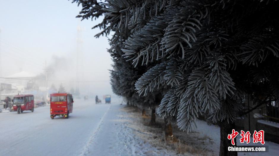 據(jù)統(tǒng)計(jì),呼倫貝爾市13個(gè)旗市最低氣溫除了扎蘭屯市南、阿榮旗南部、莫旗部分地區(qū)以外均降至-30℃以下,林區(qū)和牧區(qū)北部現(xiàn)-40℃以下的“極寒”天氣,北部林區(qū)出現(xiàn)冰霧現(xiàn)象,其中根河市的滿歸-45.1℃、敖魯古雅-43.6℃,根河市區(qū)為-41.1℃,海拉爾氣溫也降至-35℃。 圖片來(lái)源:視覺(jué)中國(guó)