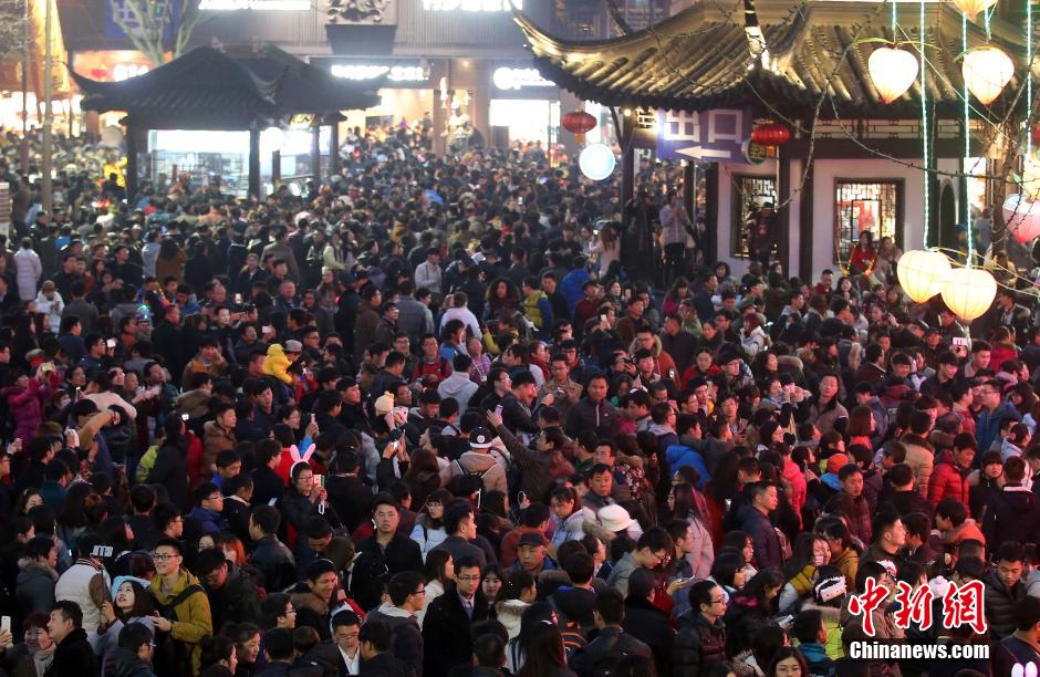 2月22日晚,南京夫子廟廣場上人山人海。當(dāng)日是元宵節(jié),數(shù)十萬市民和游客涌進(jìn)南京夫子廟景區(qū)內(nèi)欣賞秦淮燈會(huì),瞬間開啟“人從眾”模式。秦淮燈會(huì)又稱“金陵燈會(huì)”,是流傳于南京地區(qū)的特色民俗文化活動(dòng),主要在每年的春節(jié)至元宵節(jié)期間舉行。 中新社記者 泱波 攝