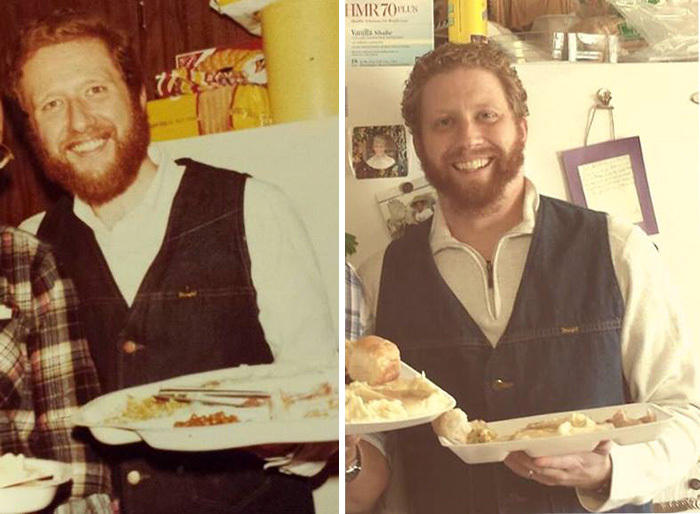 老爹和兒子,同樣的年紀,同樣的襯衫