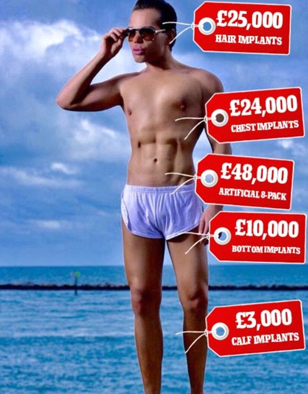 據(jù)悉,阿爾維斯在倫敦學(xué)習(xí)期間開始不滿自己的身形、容貌,尤其是當(dāng)他和帥氣新潮的朋友相處時,這種情緒更為強(qiáng)烈。于是,在2004年,阿爾維斯踏進(jìn)了整容所的大門,便開始了他持續(xù)至今的整容生涯。到目前為止,阿爾維斯大大小小接受了42次手術(shù),隆鼻、削骨、抽脂、填硅膠……累計花費(fèi)了30.5萬英鎊(約合人民幣280萬元)。
