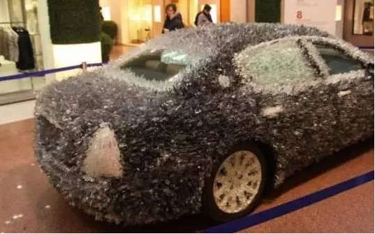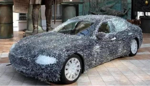 乍看上去,還以為車上長(zhǎng)滿白毛,其實(shí)都是玻璃碴。這些插滿車身的玻璃的總重達(dá)到了8千克,如果您在街上看到了這樣的車,你會(huì)伸出手去摸摸嗎?分分鐘告訴你什么是白手去,紅手回。 (來(lái)源:每經(jīng)網(wǎng) )