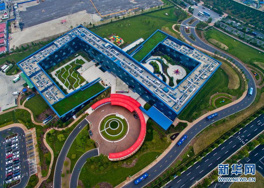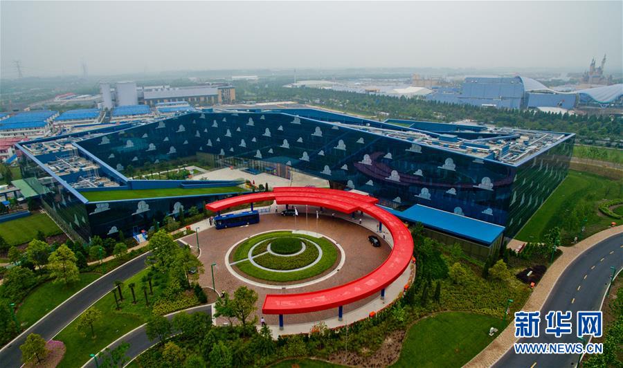 5月15日從空中俯瞰上海迪士尼玩具總動員酒店。當(dāng)日,上海迪士尼主題酒店之——玩具總動員酒店大堂、廣場、餐廳、度假區(qū)短駁車等區(qū)域及設(shè)施開始內(nèi)部測試。這家共有800個(gè)房間的主題酒店將于6月中旬正式迎客。新華社發(fā)(鈕一新 攝)